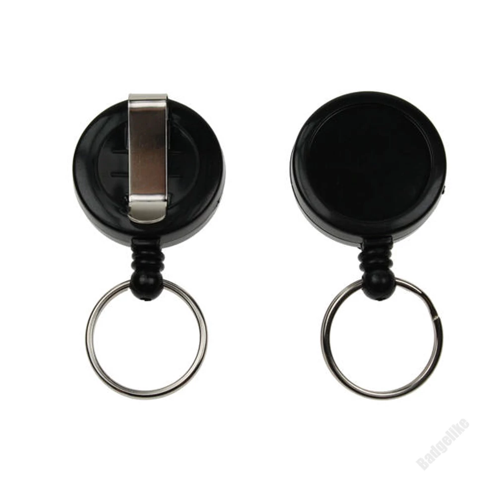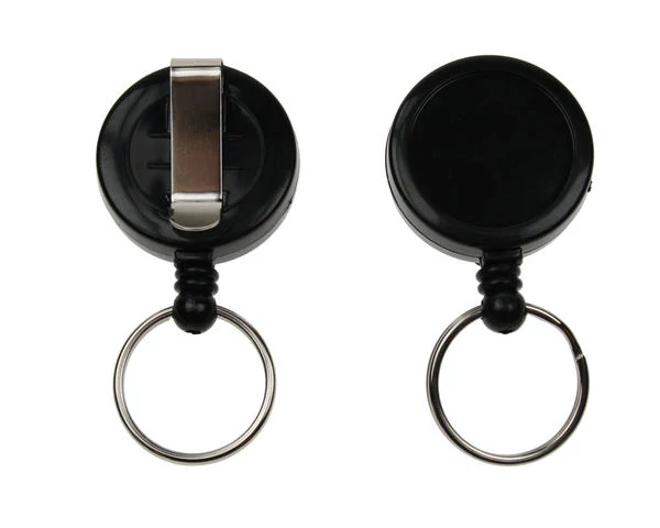 Kihúzható műanyag passz- és kulcstartó jojó kulcskarikával - FEKETE