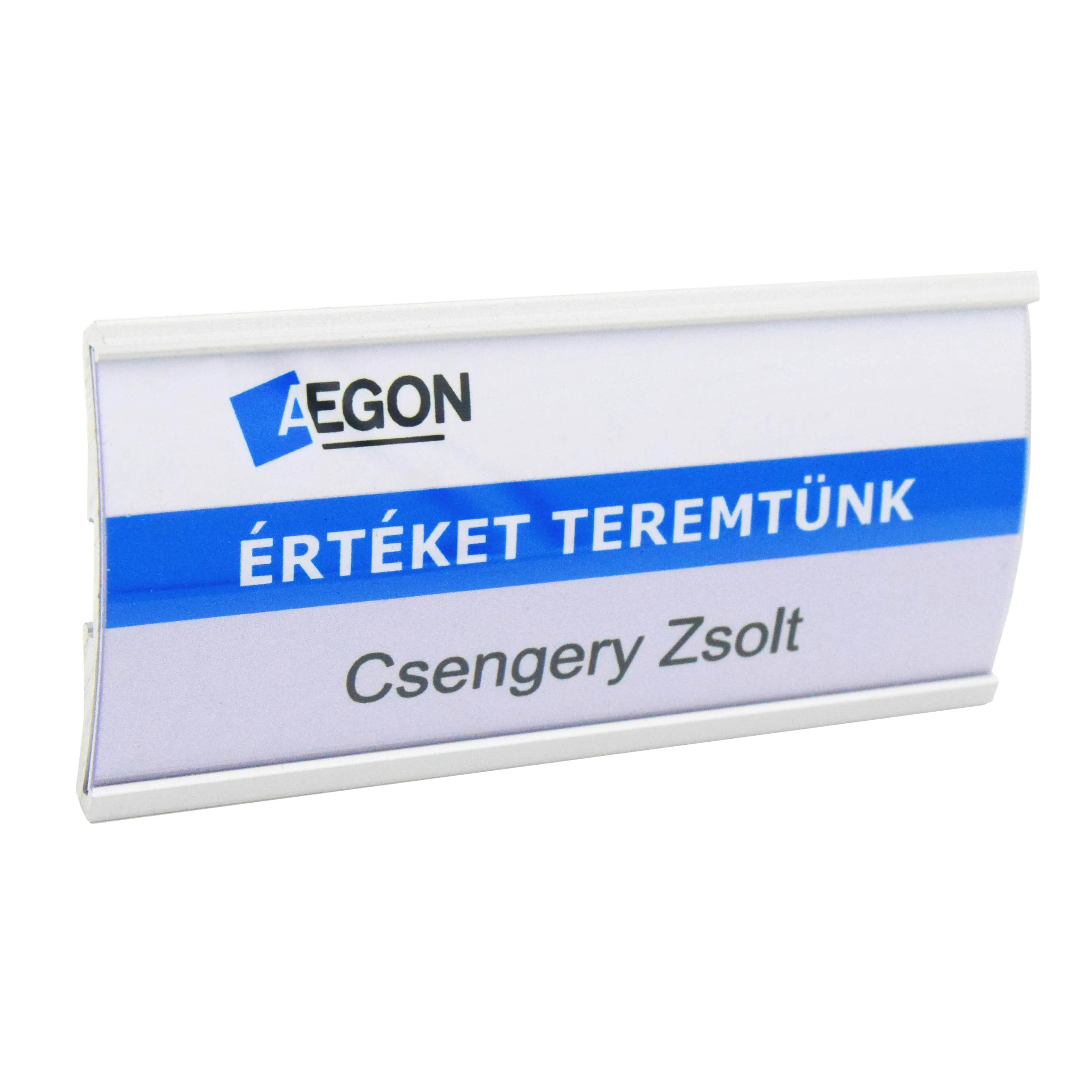 ID6013 Ívelt alumínium névkitűző, ezüst színű, tű rögzítéssel