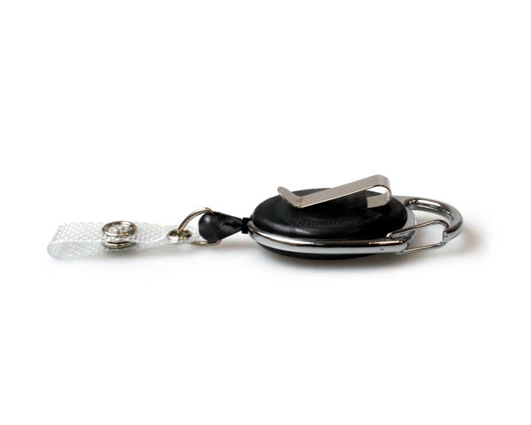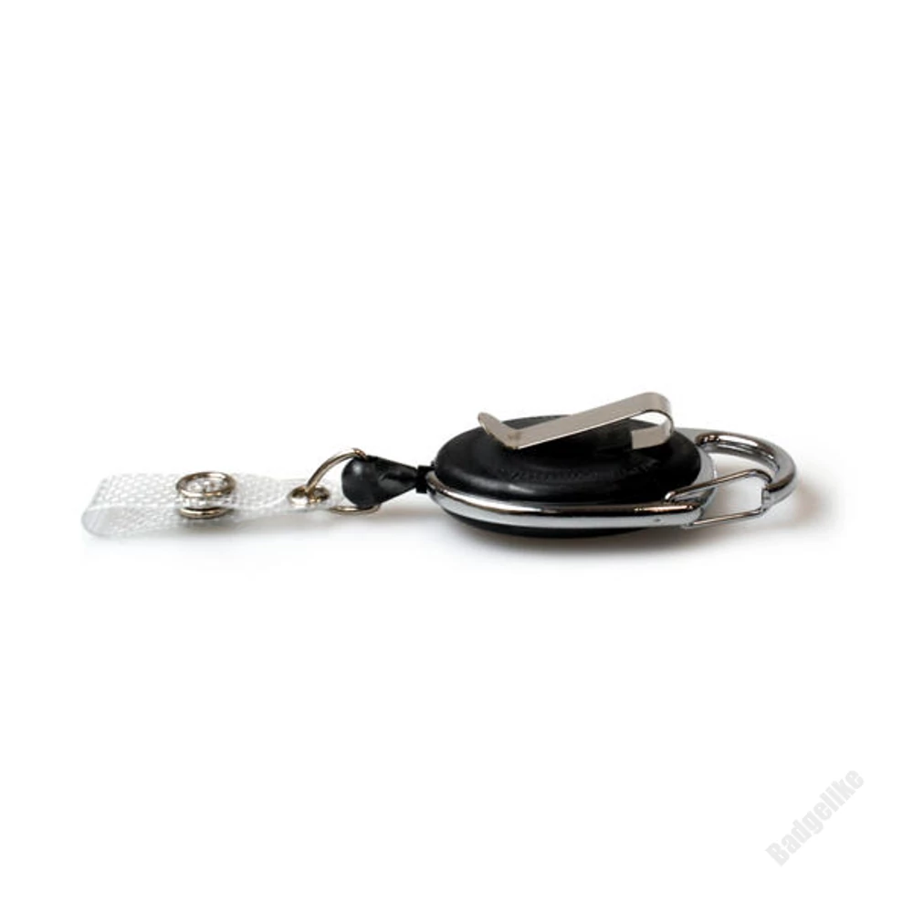 Kihúzható műanyag passz- és kulcstartó jojó fém övcsattal - FEKETE