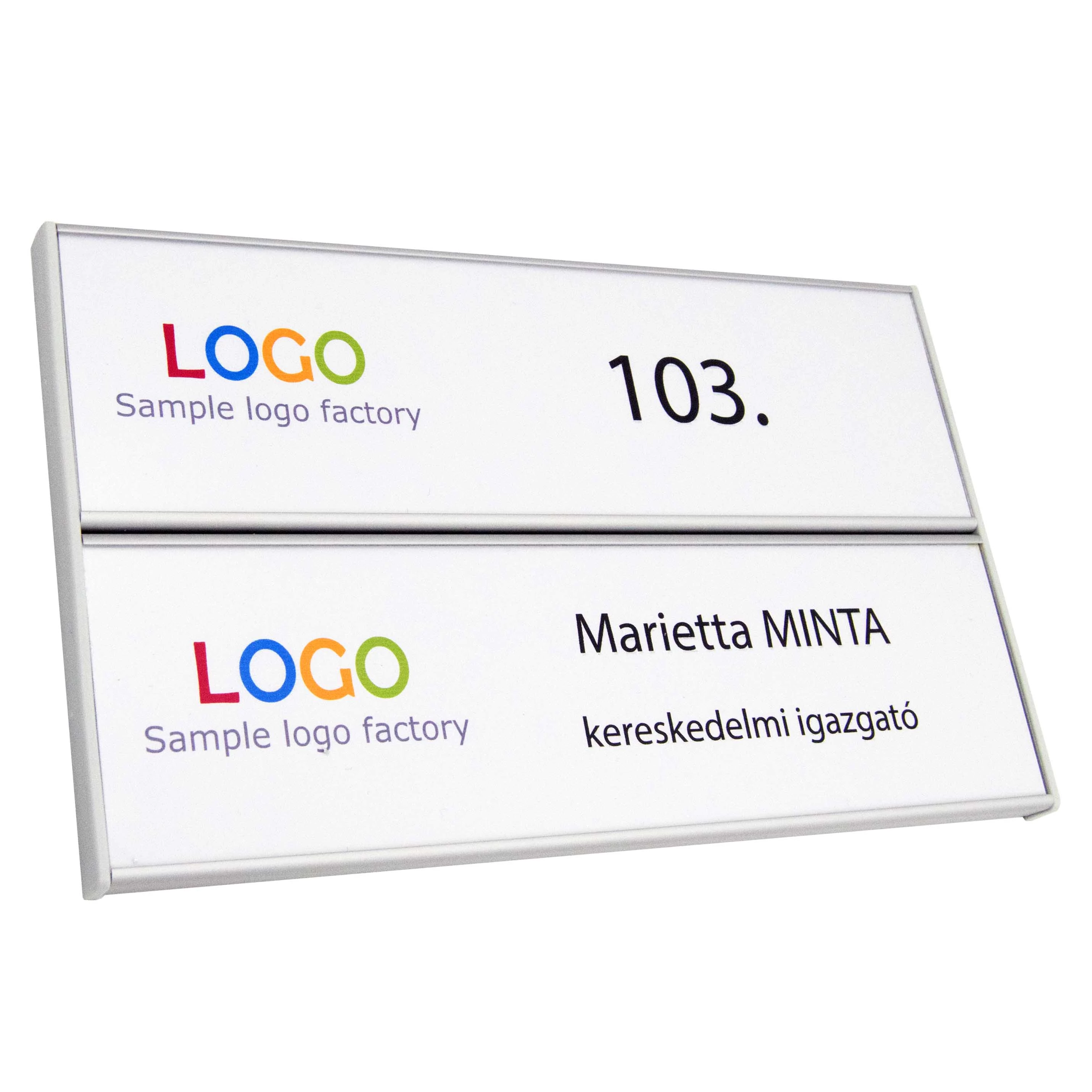 A megjelenítendő felirat akár asztali nyomtatóval is elkészíthető egyszerű nyomtatópapírra, amelyet egy átlátszó axpet lemez alá kell elhelyezni. Így egyedi, de mégis egységes arculat érhető el az irodai helységekben.